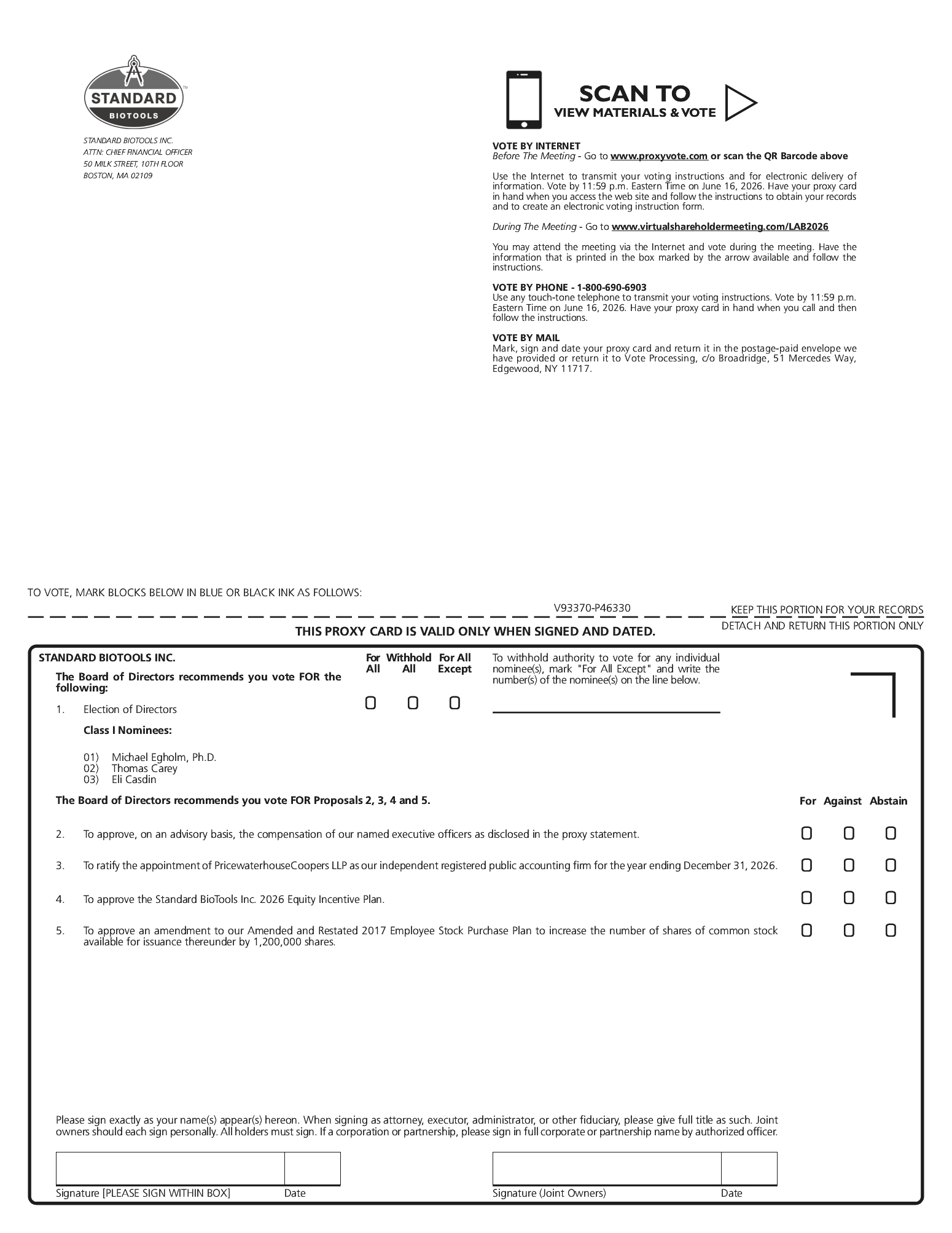 Standard BioTools Inc. | II-6 | 2026 Proxy Statement | ||||