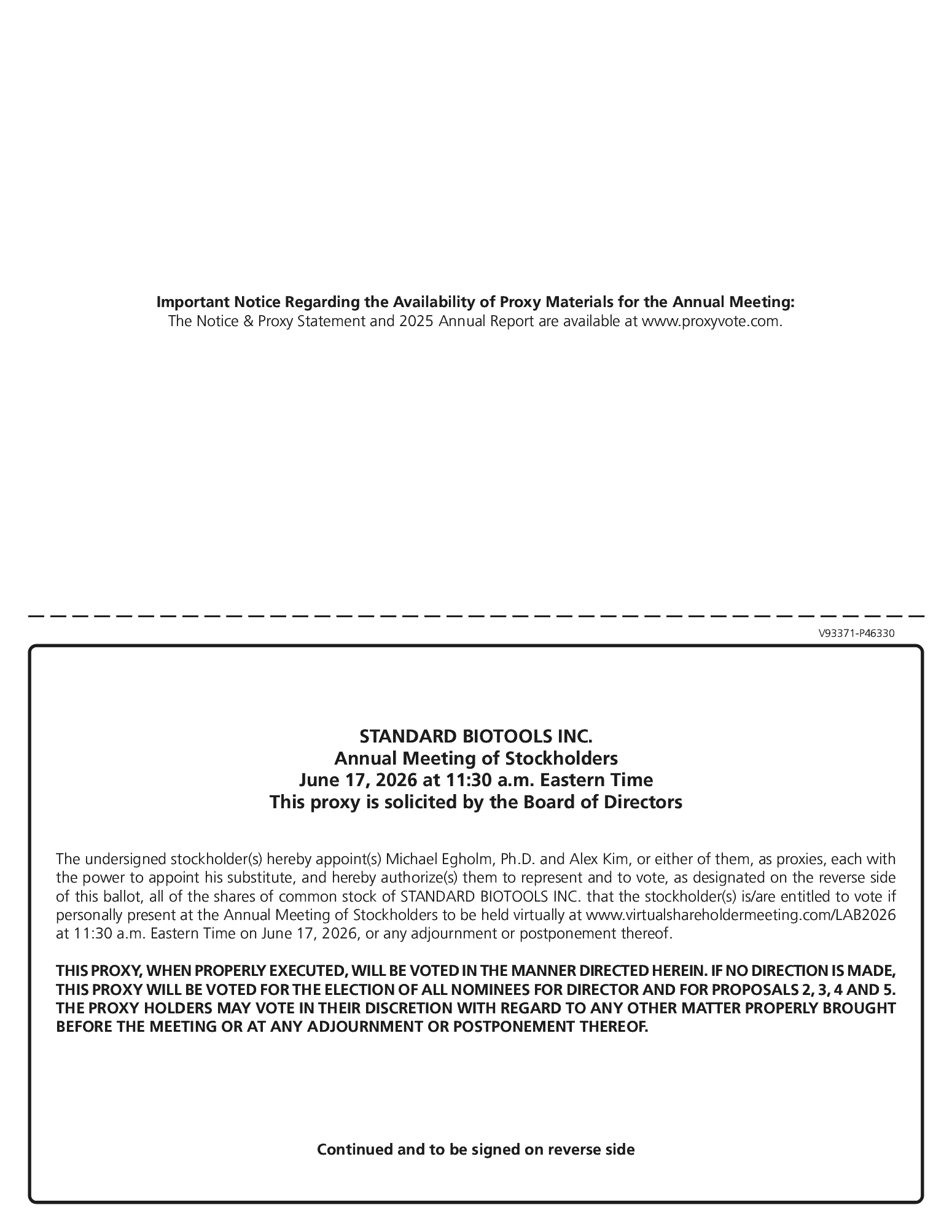 Standard BioTools Inc. | 2 | 2026 Proxy Statement | ||||